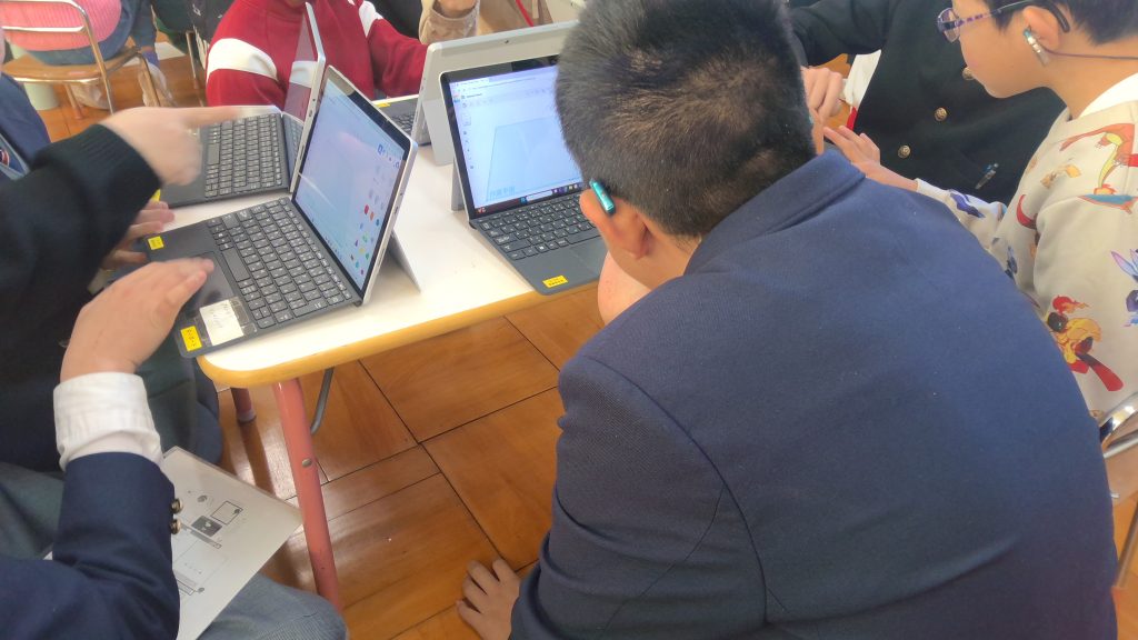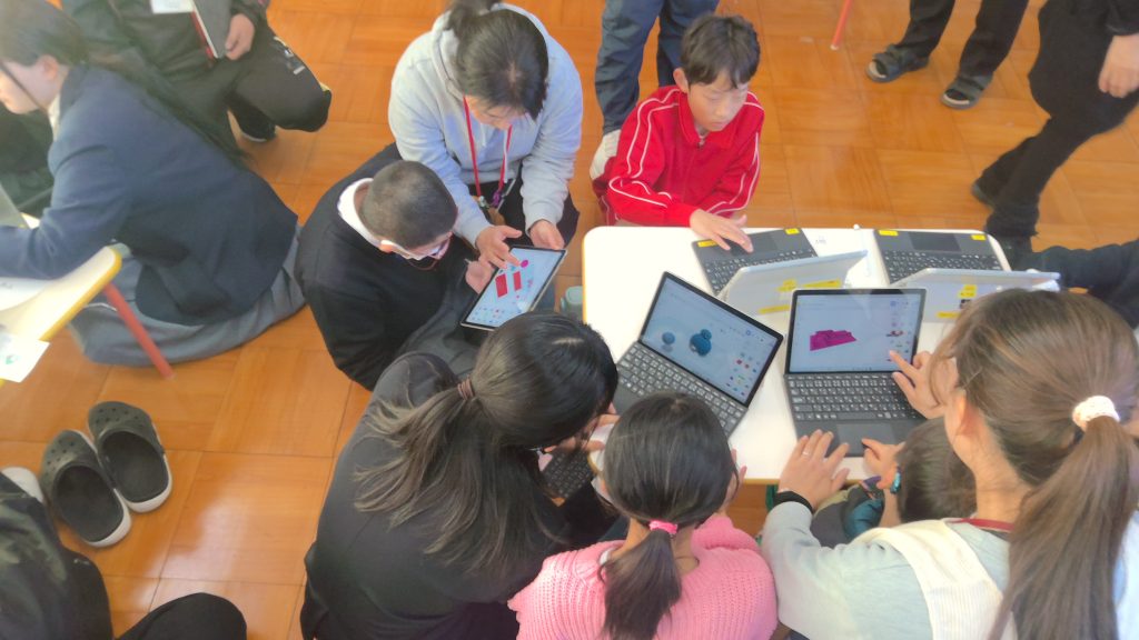 3Dプリンタ教室では、自分のパソコンを使って形の設計に取り組みました。画面上で図形を動かしたり、大きさを変えたりしながら、作りたい形を少しずつ考えていきました。
