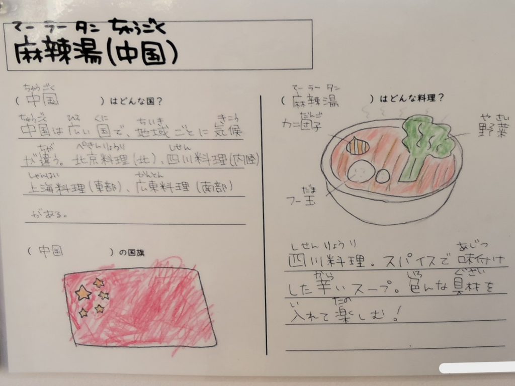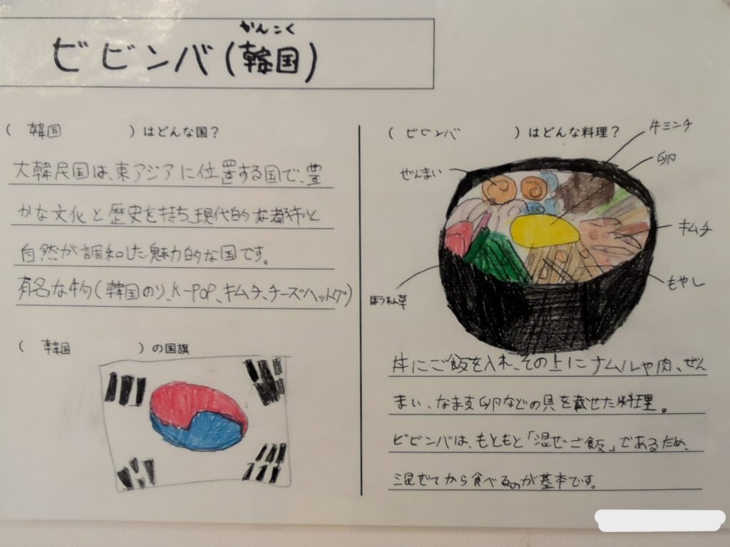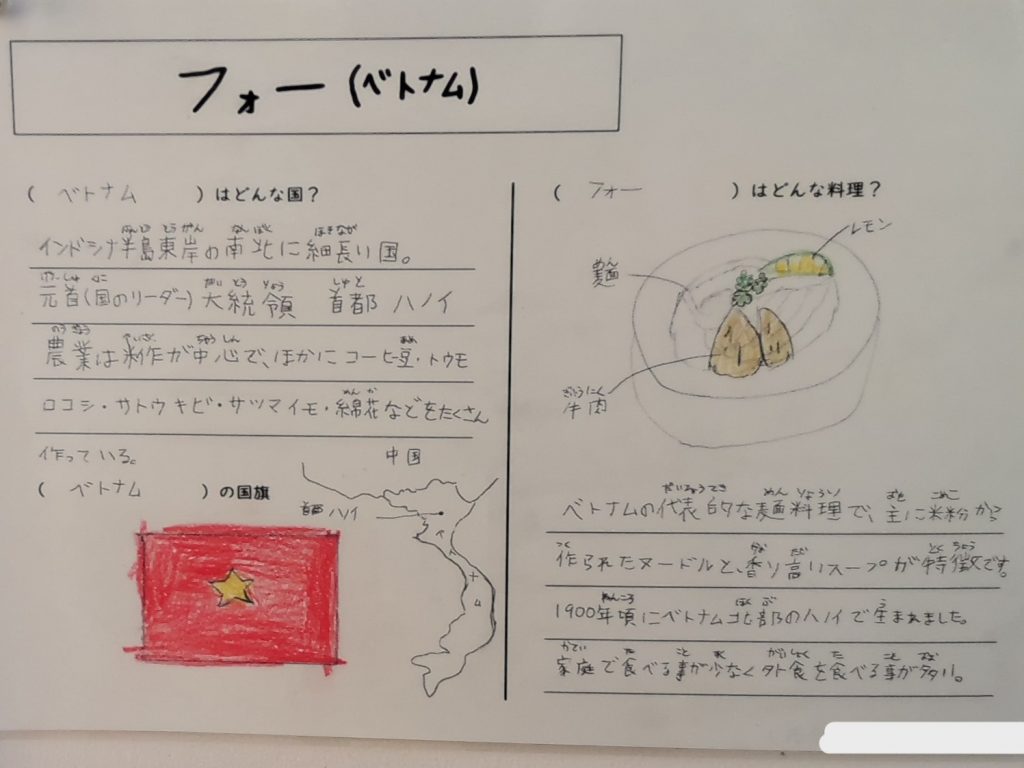 また、保健運動委員の生徒が、給食で出るアジア料理を調べてくれました!