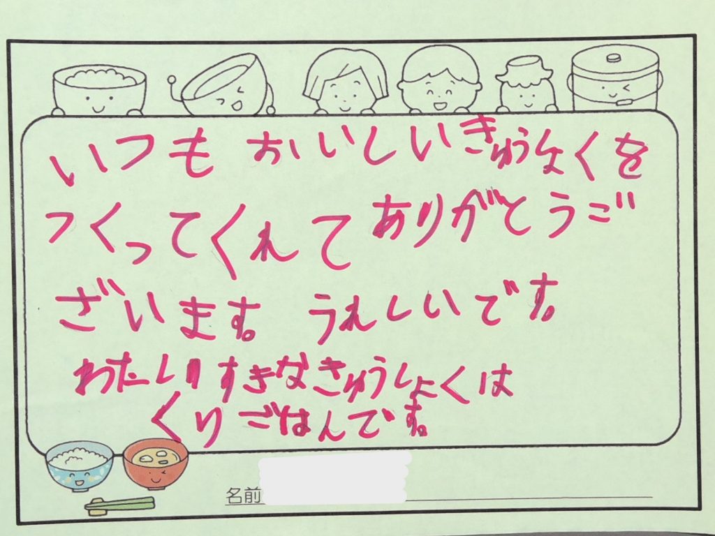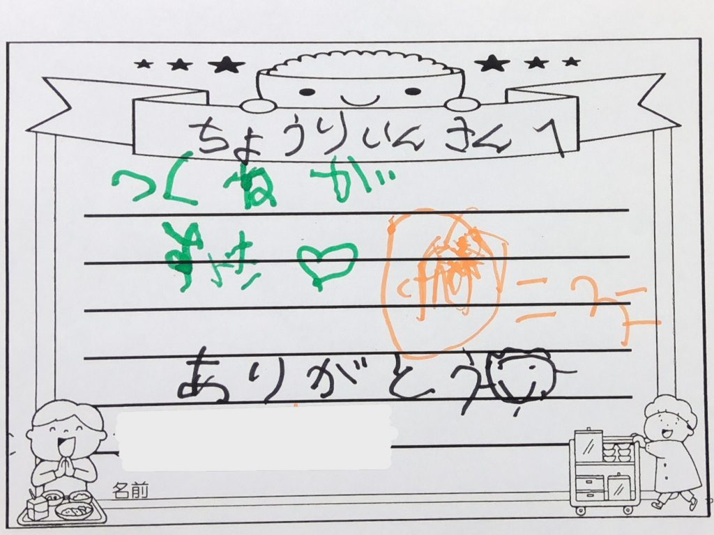 調理員さん、いつもありがとうございます😊