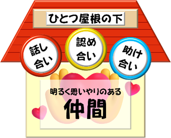 ひとつ屋根の下、異なる部の子どもたちが生活を共にしています。3つの「あい」のもと、皆が気持ち良く生活しながら生活の力を伸ばしていけるように寄宿舎指導員がサポートします。