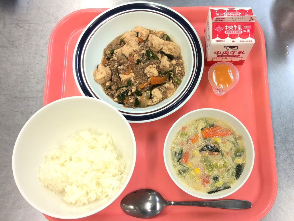 マーボー豆腐は、ごはんにかけて食べている子もいました!モリモリ食べられておいしかったね♪