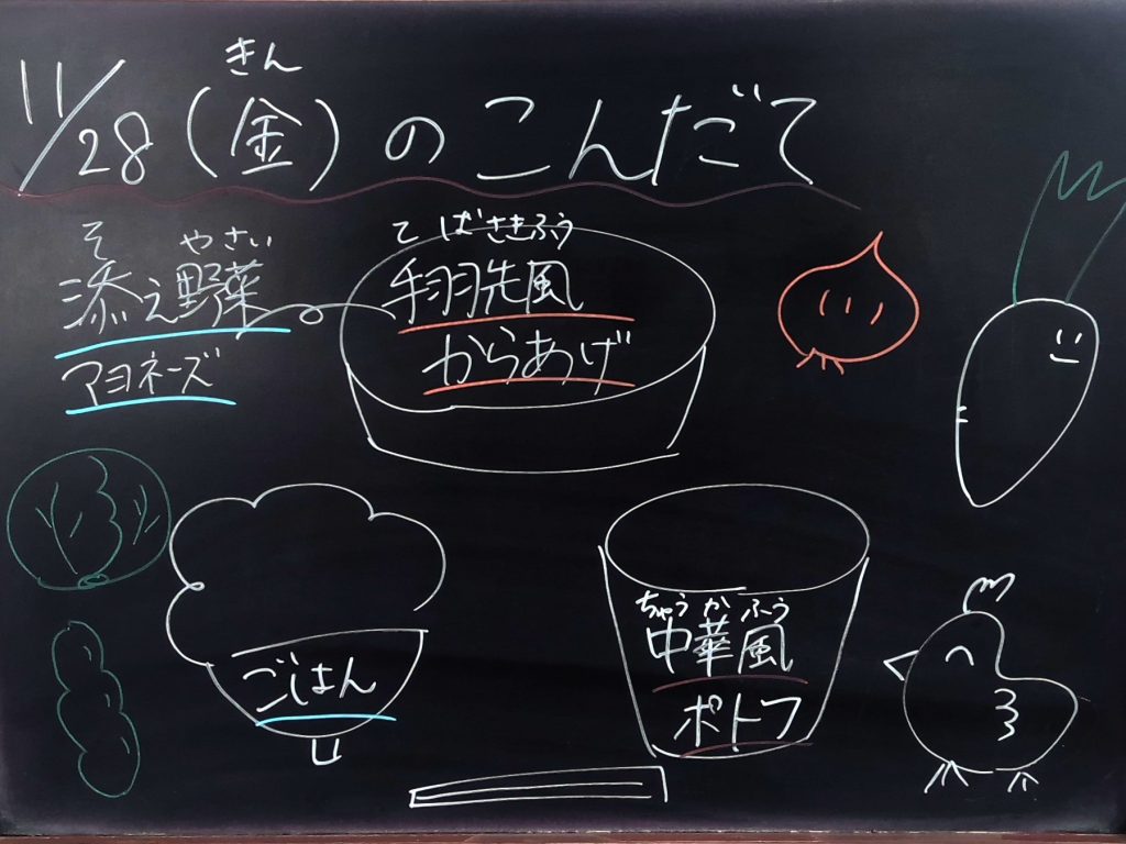 手羽先風からあげは、甘辛くておいしかったね♪今日は、11月の中で一番残食が少ない日でした!