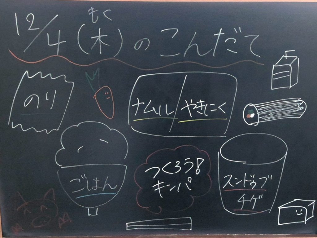 今日は、韓国料理!ごはん、焼肉、ナムルをのりで巻いて食べました!自分で作ると、さらにおいしくなるね♪